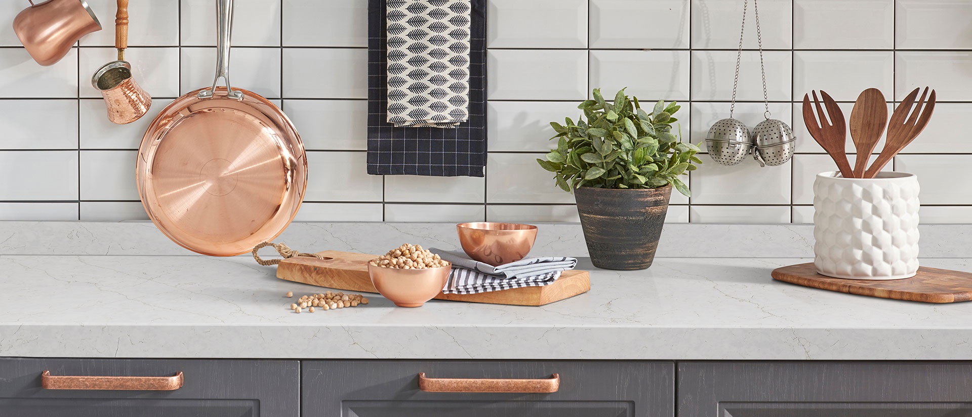 Soft and sophisticated, Calacatta Karmelo Quartz features a warm white background with wispy vein patterns, complemented by long thin lines, specks, and other natural textures for a high-end look that suits any design style. Use this to create beautiful quartz countertops, walls, or other surfaces to add a touch of elegance to any room. In addition, it’s low maintenance and offers life-long durability, ensuring your surface will stay beautiful for years to come. Calacatta Karmelo is ideal for interior use in residential and commercial applications. Select from 2cm and 3cm slabs for design and installation flexibility.